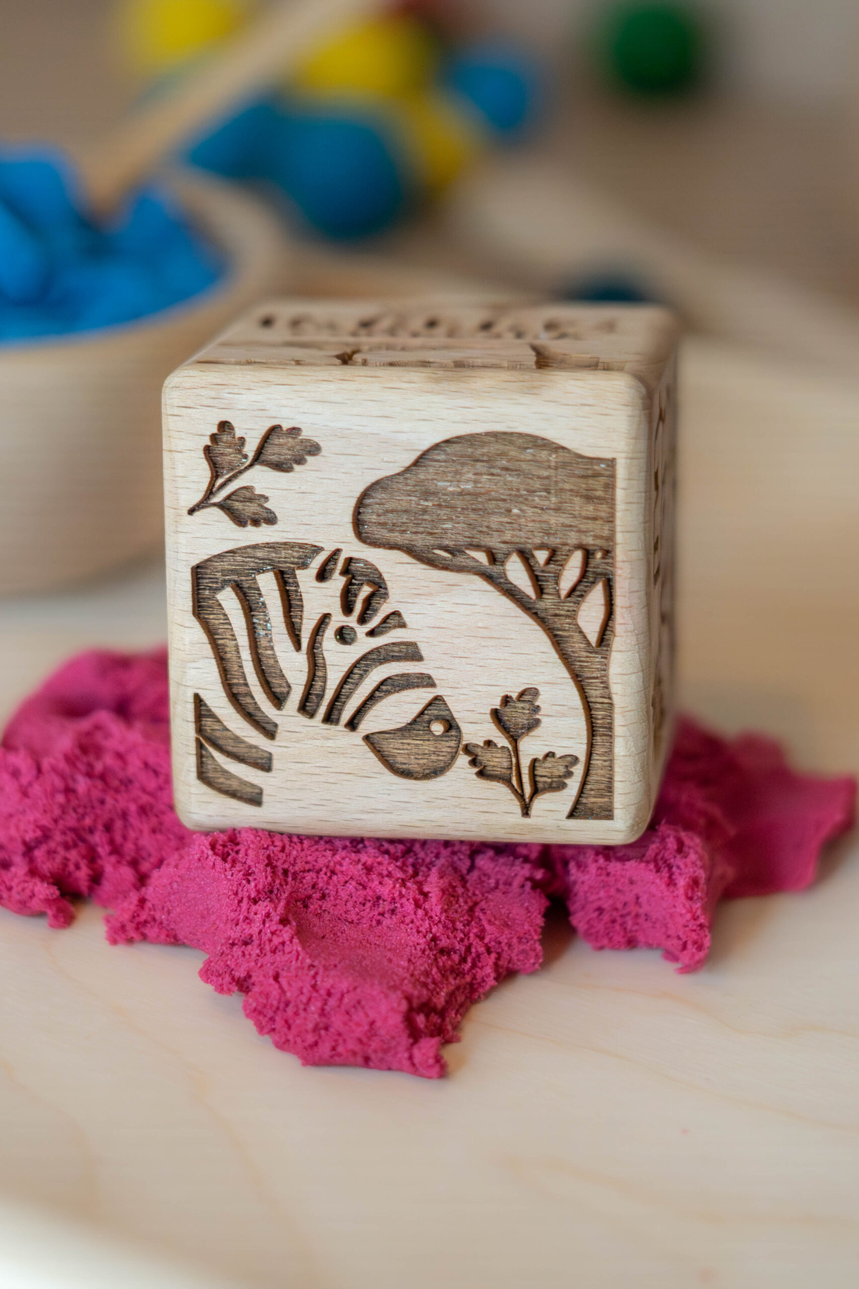 Czy Twoje dziecko marzy o podróży na Safari? Dzięki drewnianej kostce grawerowanej z motywami dzikiej przyrody, może w kilka chwil stworzyć własny egzotyczny świat w piasku dynamicznym. To wyjątkowy dodatek, który zachwyci każdego małego odkrywcę!