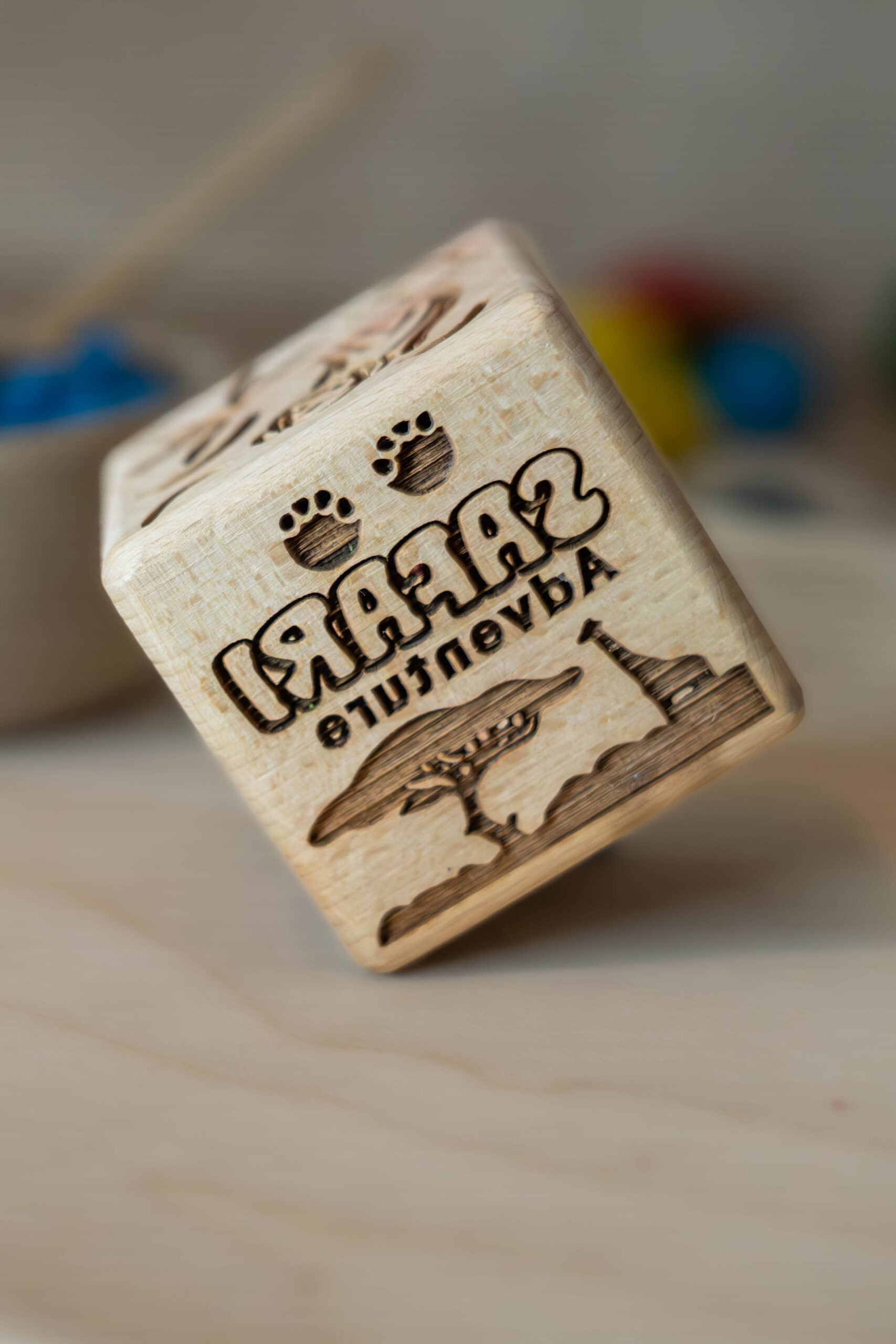 Drewniana grawerowana kostka Safari– zabawa, która przenosi w egzotyczne światy!