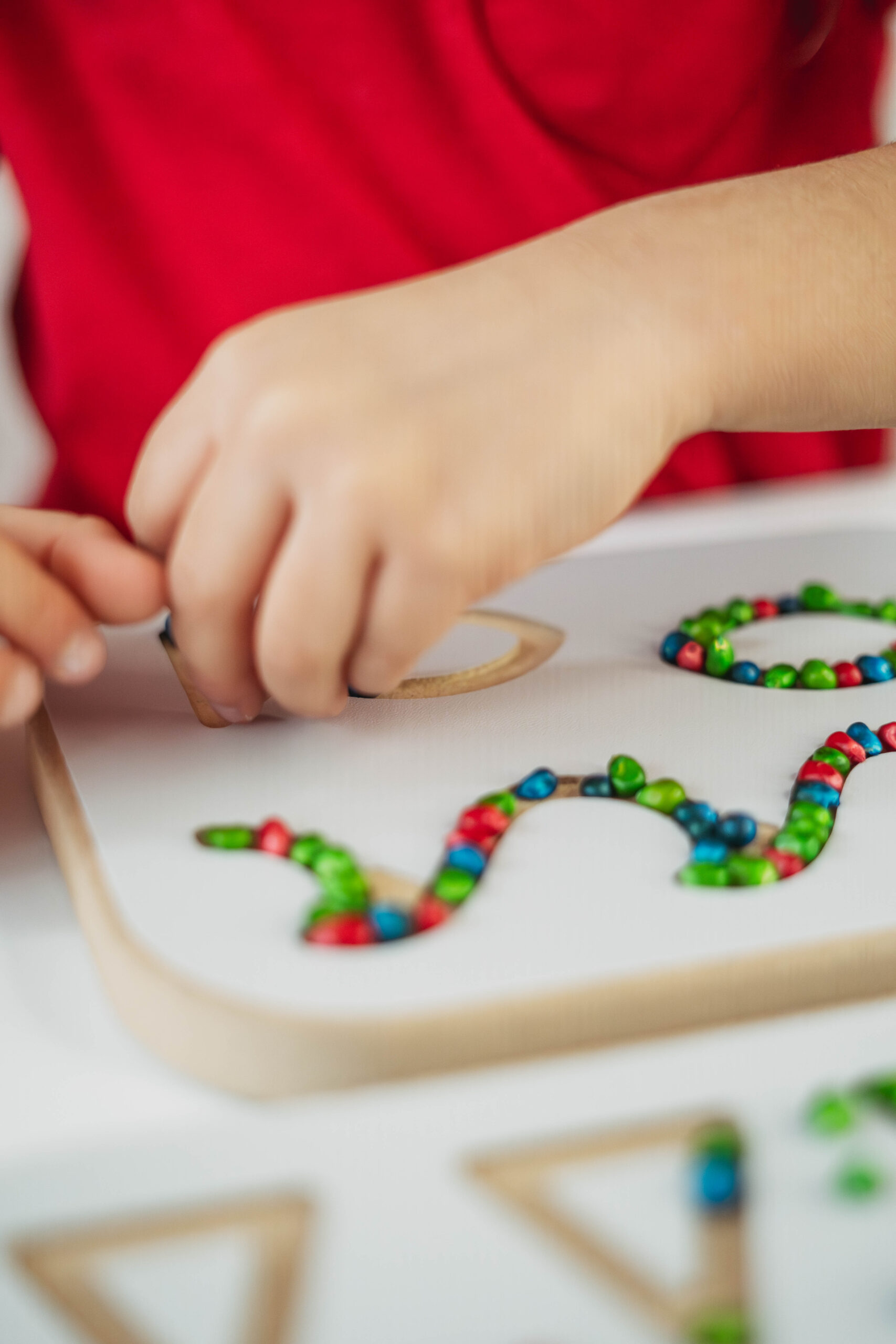 Tablica grafomotoryczna wypełniana kolorowymi ziarnami