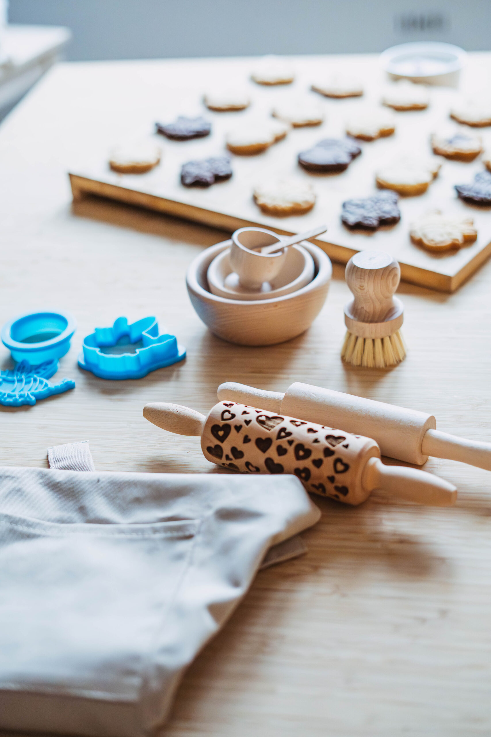 Ten wyjątkowy zestaw to nie tylko akcesoria do pieczenia – to narzędzie, które wspiera rozwój motoryki małej i pozwala dzieciom uczyć się nowych umiejętności, takich jak przesypywanie, mieszanie, wałkowanie i wycinanie. Dziecięcy fartuch z dużą kieszonką, drewniane miseczki, ozdobny wałek z printem i foremki w kształcie pszczółki sprawiają, że każdy etap pieczenia staje się dla dziecka fascynującą przygodą.